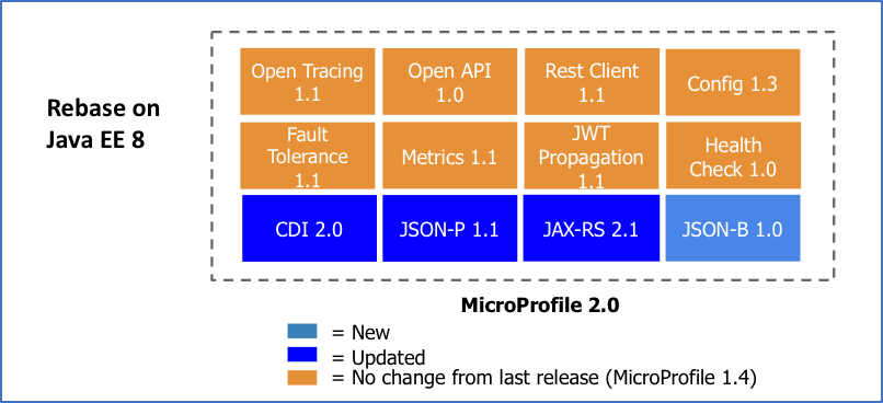 First, a brief history of the Eclipse MicroProfile project. MicroProfile was created to extend the Enterprise Java environment for developing microservices. We first selected the minimal three Java EE technologies that would provide a solid base for microservices development – CDI, JAX-RS, and JSON-P. Since that initial release, we have added several other component features to further define the microservices programming model. Our latest MicroProfile release has also included support for Java EE 8.