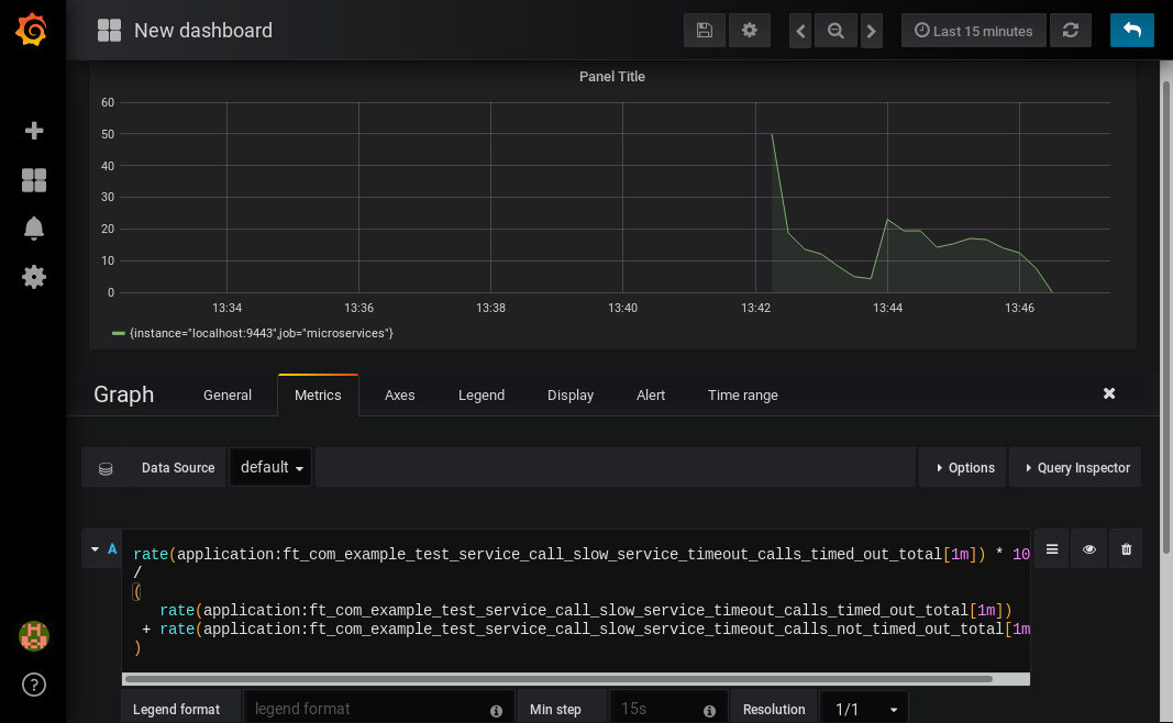 You might wonder why we added together the two metrics rather than using the invocations_total metric we saw earlier. The reason is that if the method was also annotated with @Retry, then each retry attempt would get its own timeout and would be counted towards either the timed_out or not_timed_out metric.