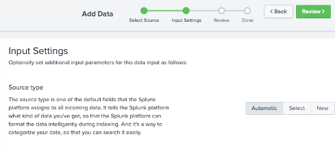 Source typefield is set to “Automatic”. Leave the other fields unchanged and click Review.