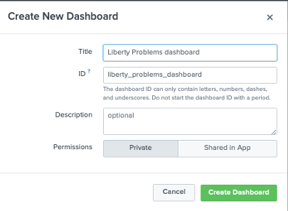 On the Search & Reporting page in the Splunk Web Interface, click on the Dashboards tab and click Create New Dashboard. In the pop-up window, enter a title for your dashboard and click Create Dashboard, leaving the remaining fields unchanged.