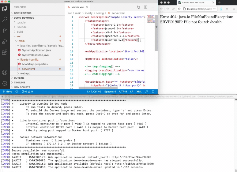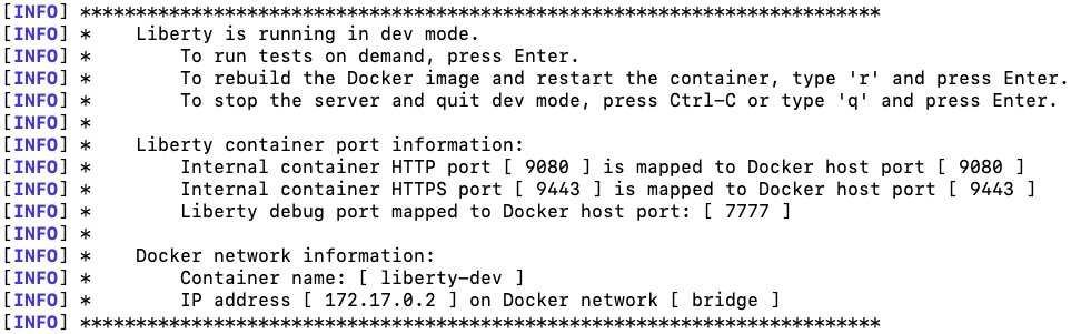 For more information about using this feature, see Container support for dev mode in the Open Liberty docs.