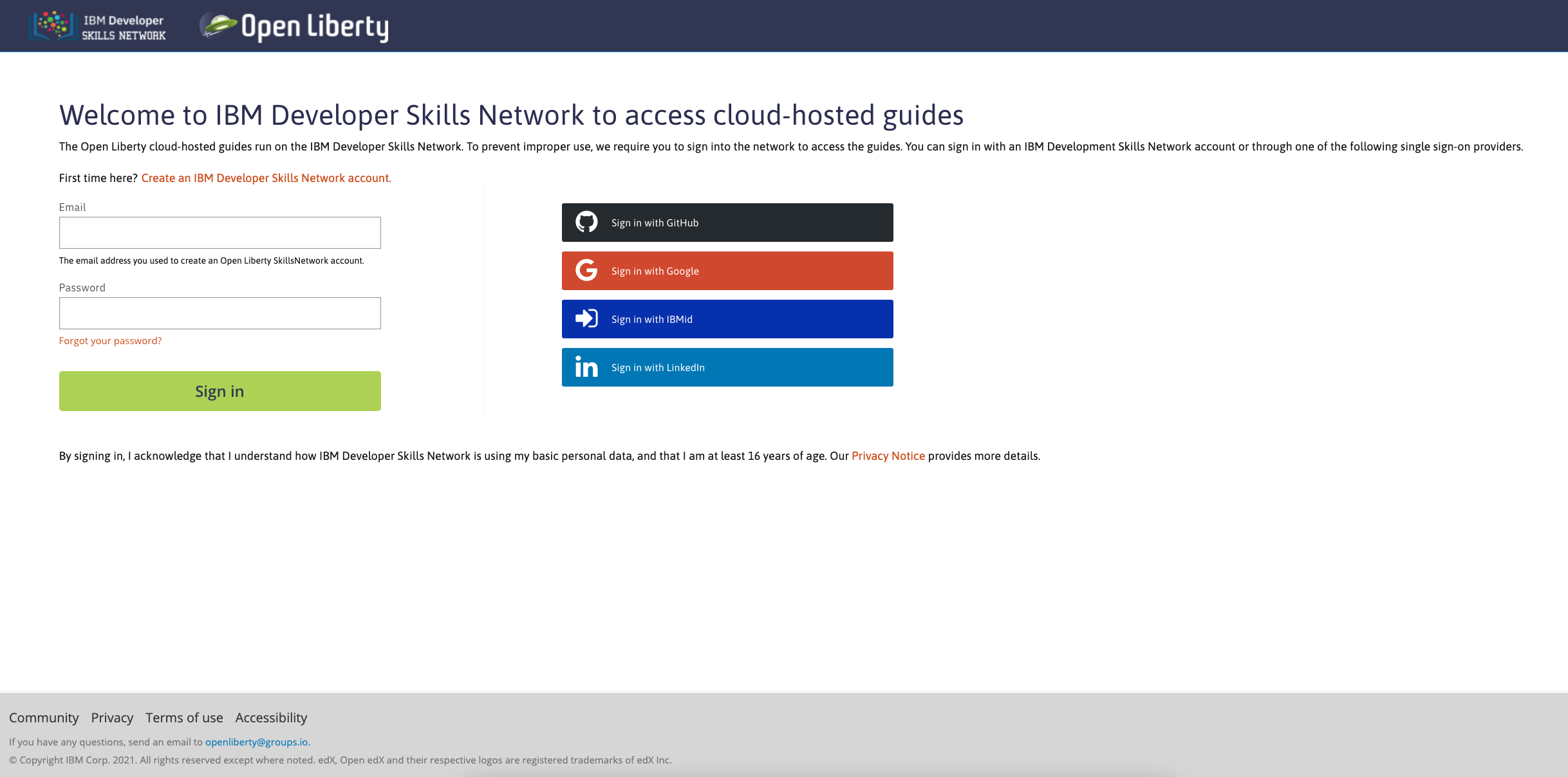 It is easy to get started once you click the previously mentioned Run in cloud button. You will be taken to a login page for the cloud environment. From here, you can log in or create a new account. We require only minimal information for you to get going. You can also use social logins to create an account and then use that later to log in quickly.