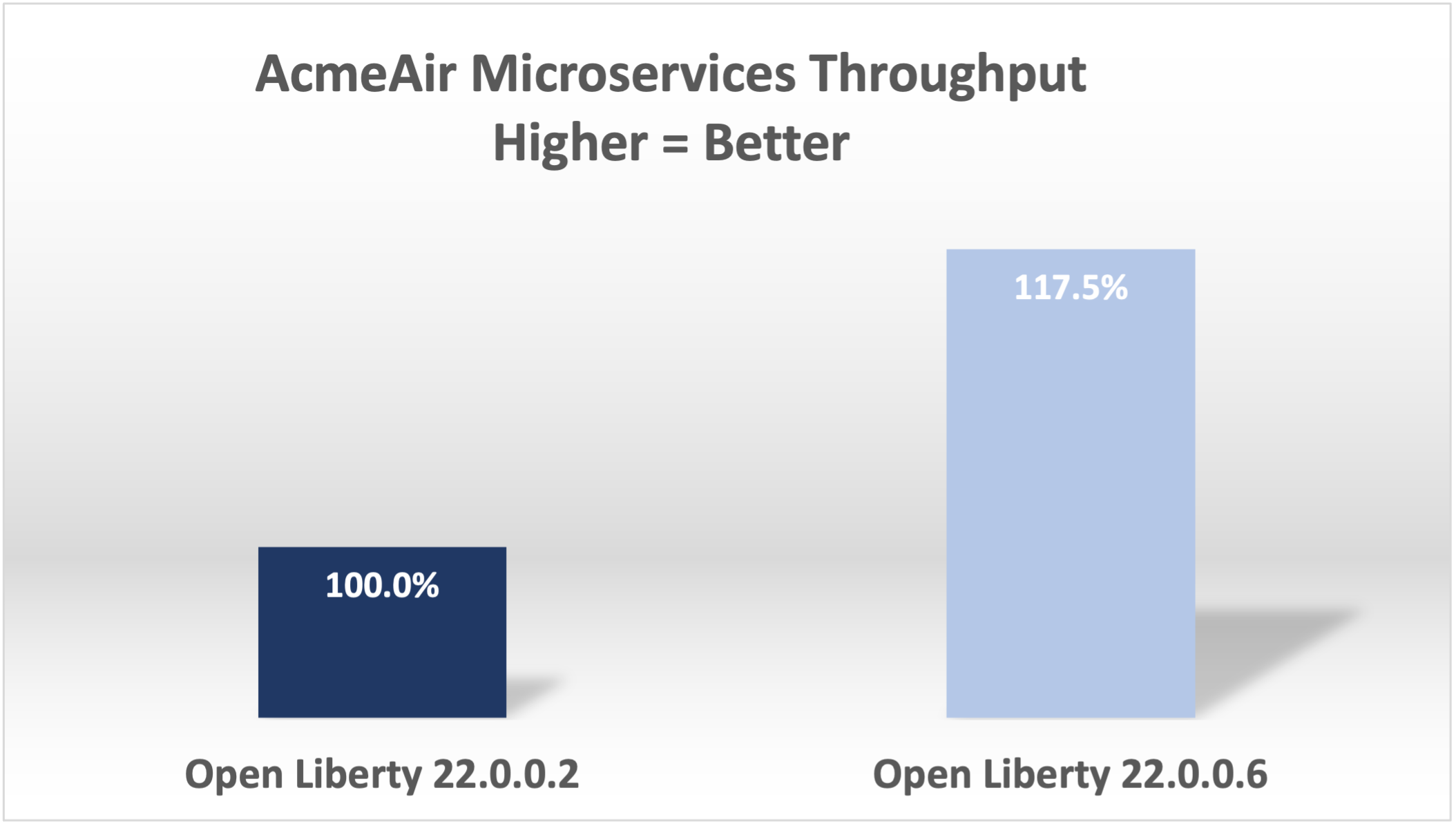 With these changes, Open Liberty was now 32% faster in 22.0.0.5 than 22.0.0.2.