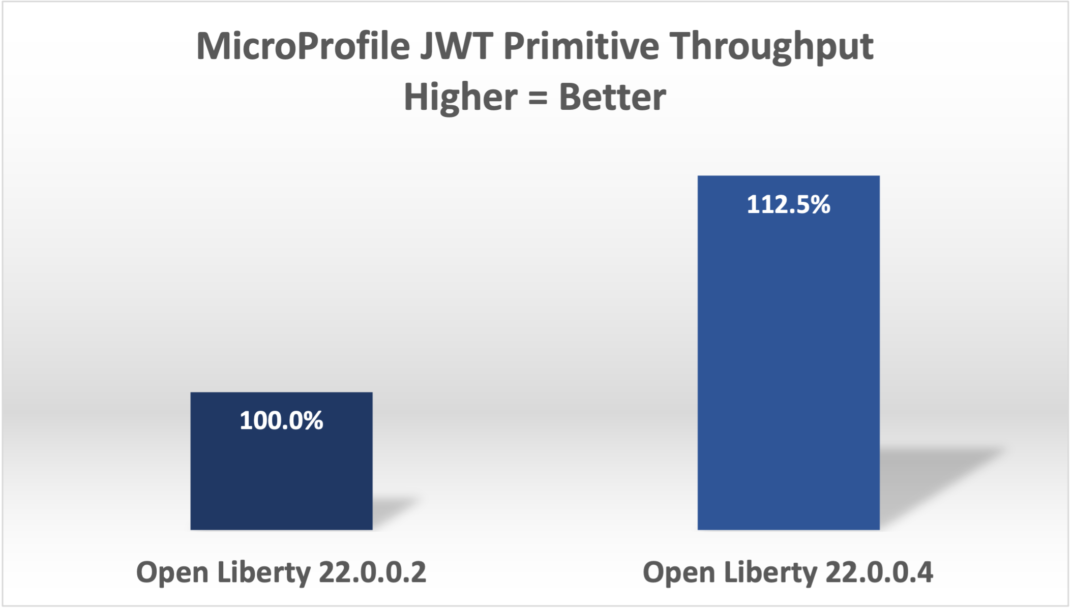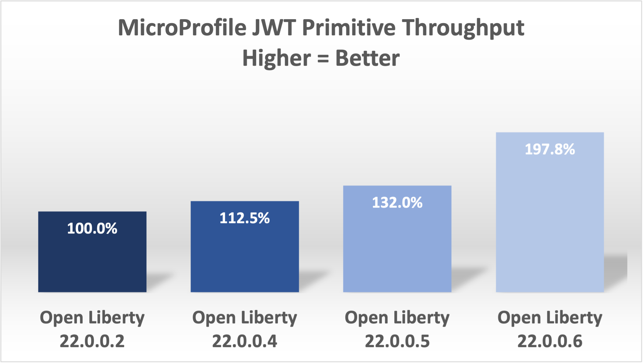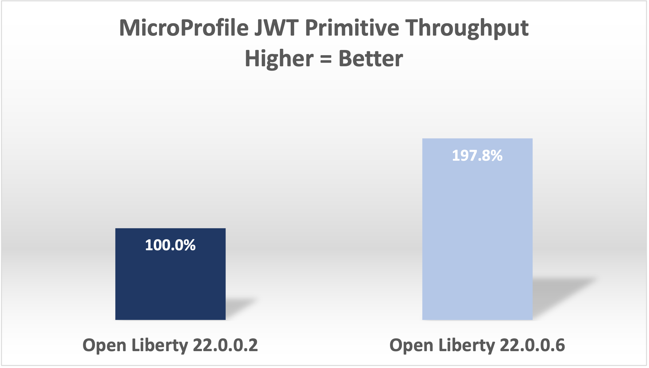 The performance throughput of Open Liberty for applications secured using MicroProfile JWT has significantly improved over the last few releases (22.0.0.2 to 22.0.0.6). In this blog post, I discuss how we made these performance improvements using a simple scenario where throughput was doubled.