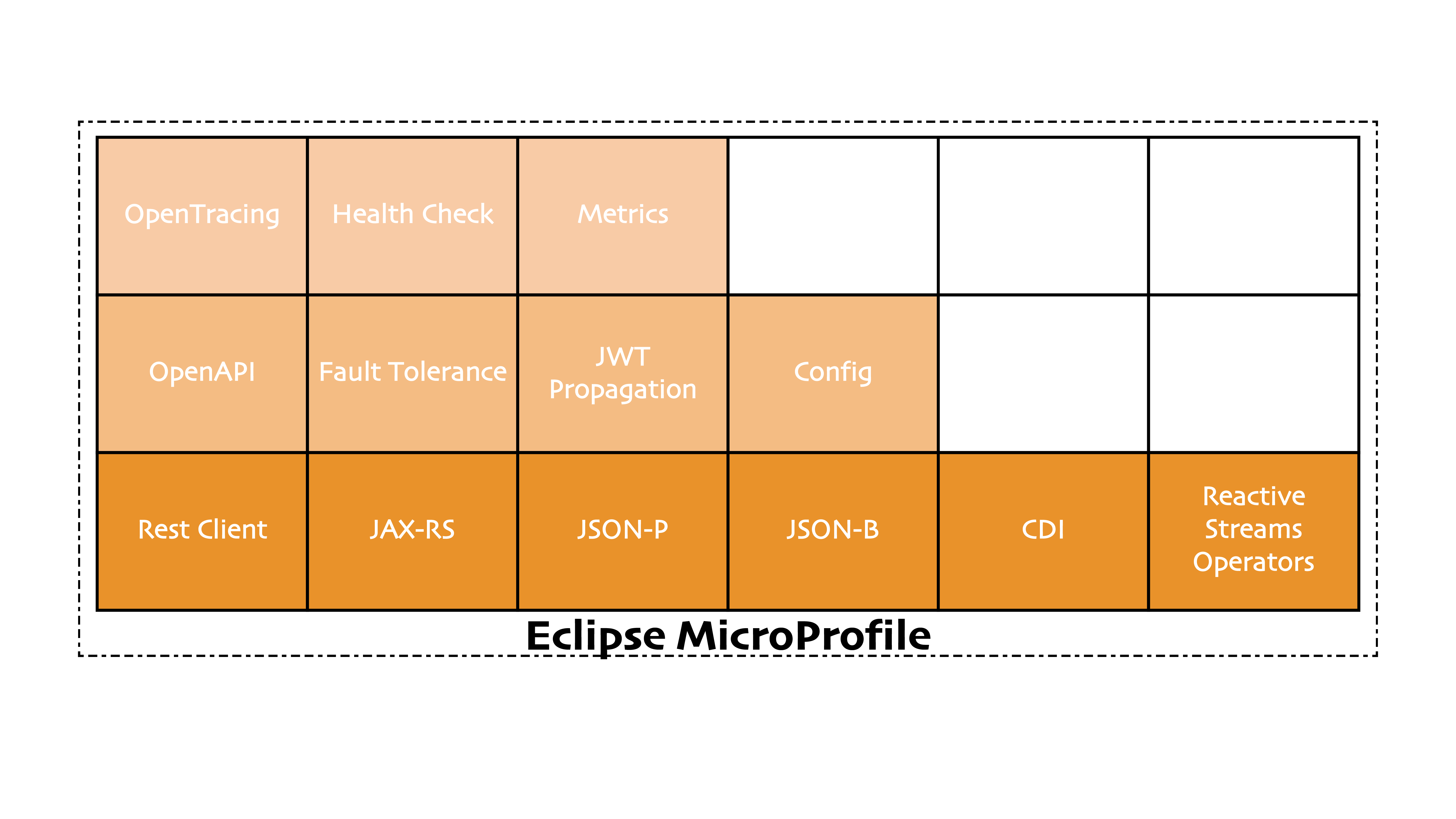 Handling hundreds of autonomous, collaborating, and frequently evolving services introduces a number of new challenges. These challenges include, for example, documenting and sharing APIs across teams, propagating security across services, handling network or service failures, and continuously integrating and deploying service updates. The middle layer of MicroProfile features provides a number of APIs to simplify these tasks.