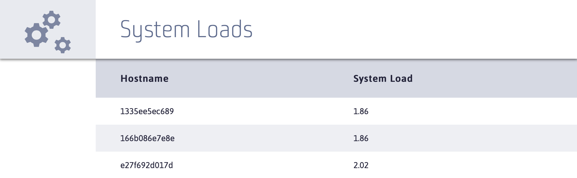 The front-end UI is a table where each row contains the hostname and load of one of the three system services. The HTML and styling for the UI is provided for you but you must populate the table with information that is received from the Server-Sent Events.
